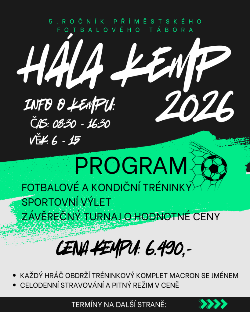 📅 Termíny fotbalového tábora HÁLA KEMP 2026 I Tetín u BEROUNA